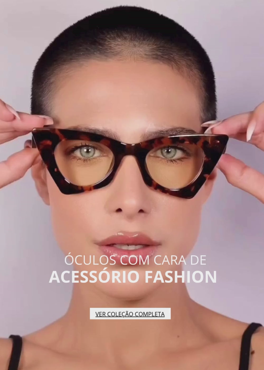 para que usar óculos seja uma escolha, não uma obrigação. Nossas armações valorizam o rosto feminino com encaixe leve, firme e confortável. Nada de escorregar, apertar ou pesar. Tudo o que uma mulher procura: design único, conforto absoluto e presença marcante.
