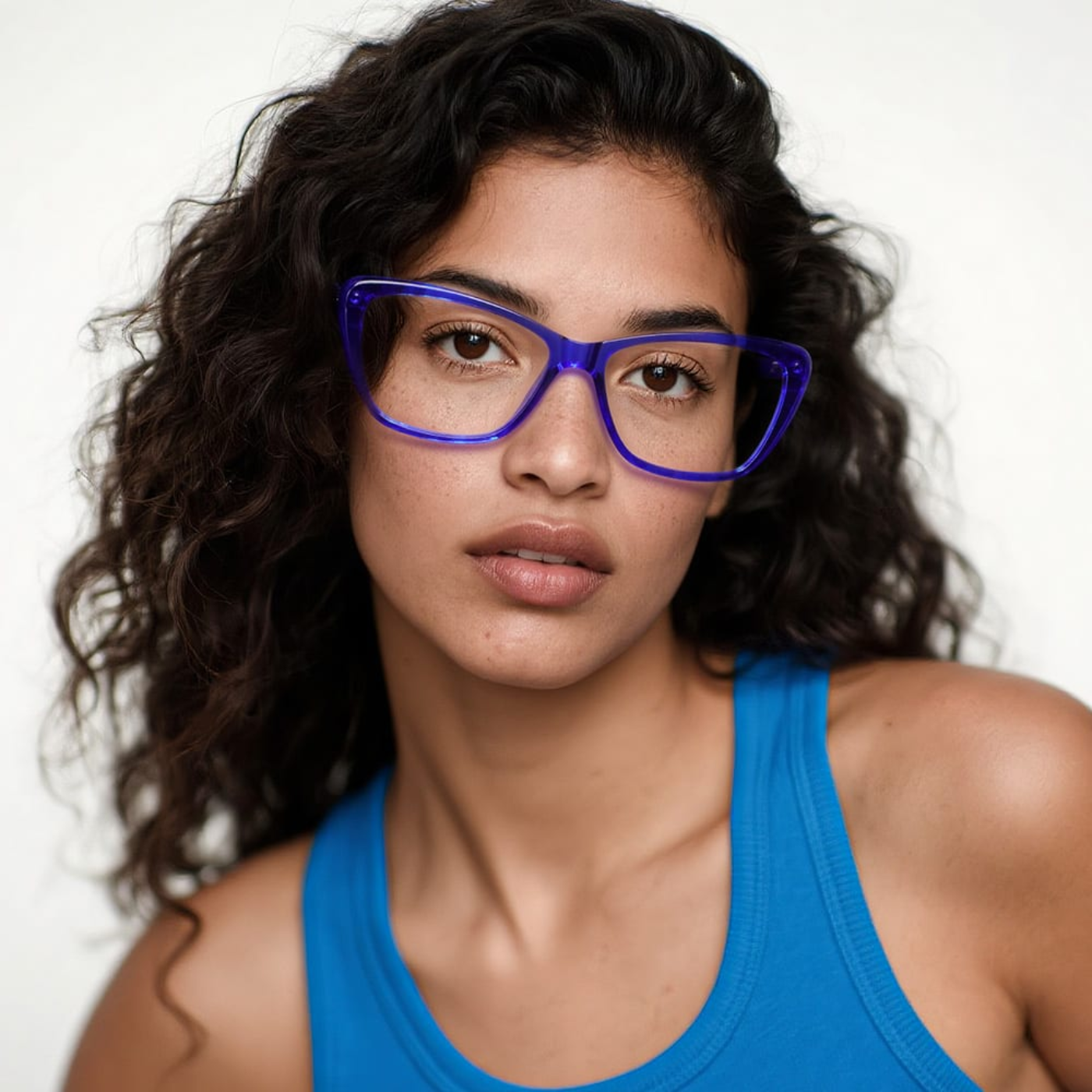O modelo Azzurra é frescor em forma de design. Sua armação em azul translúcido, com sutis toques de verde, traduz a leveza do mar em contraste com a força de linhas modernas. O efeito transparente valoriza o olhar com naturalidade e cria uma presença elegante sem esforço. Uma peça feita para mulheres que querem unir autenticidade e sofisticação em cada detalhe.