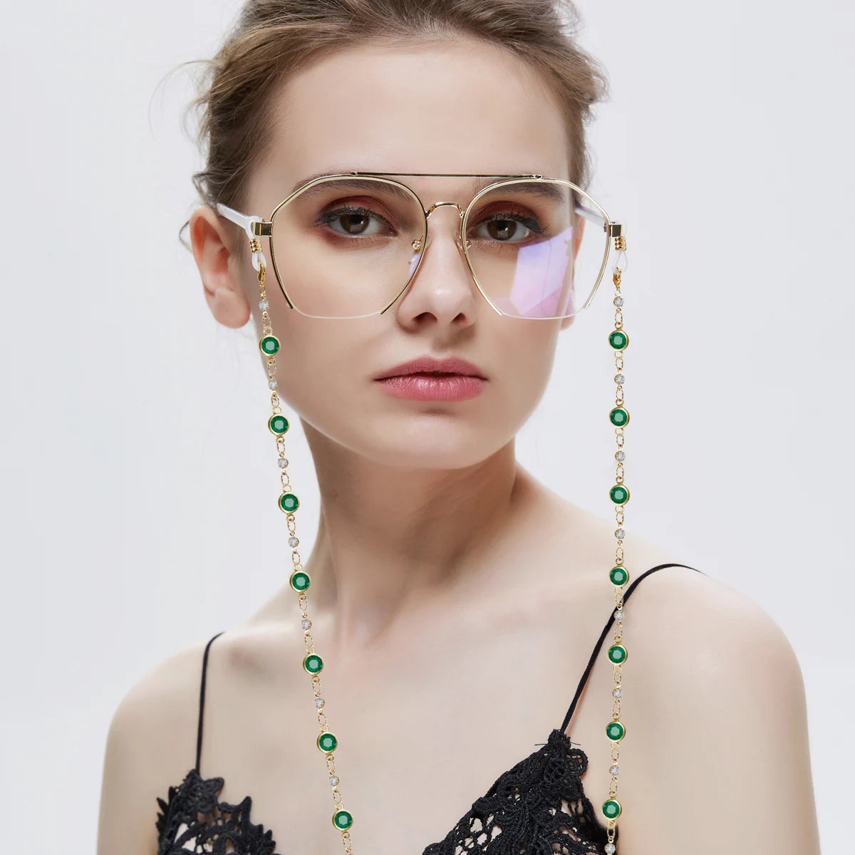 As correntes Hirsi são compostas por pingentes multicoloridos em tons quentes, azuis e verdes, criando o acessório perfeito para complementar seus óculos de sol ou óculos com proteção contra luz azul. As correntes Meller também podem ser usadas como acessório para suas máscaras faciais.