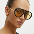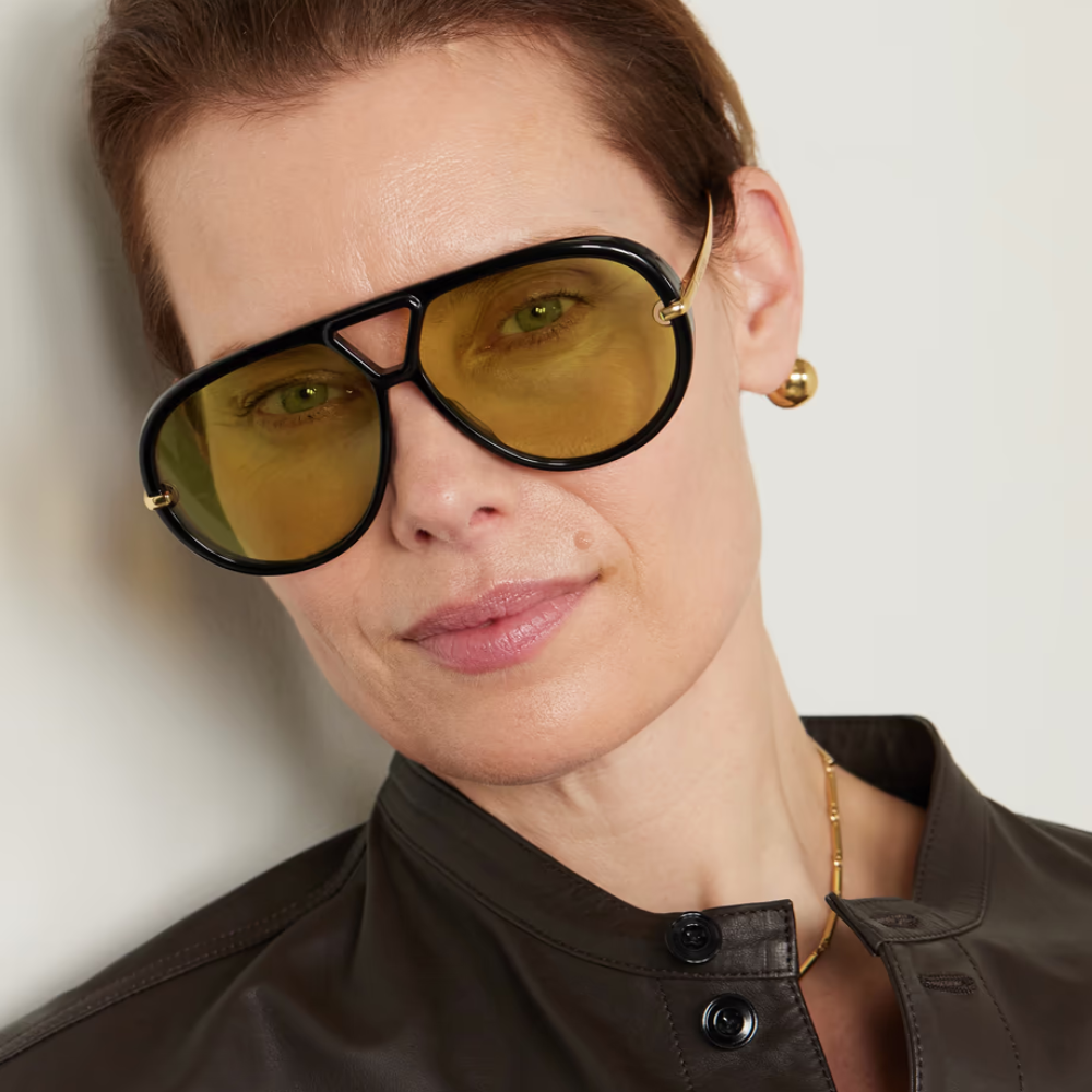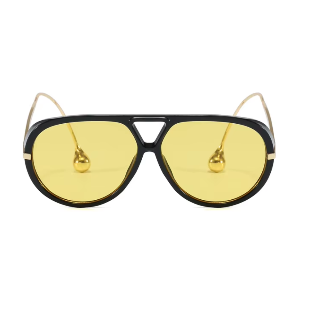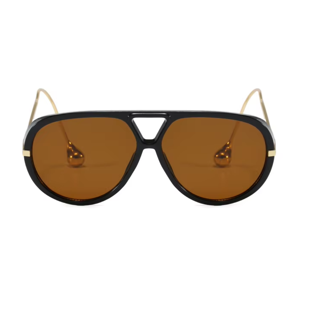 Aventure-se com os óculos de sol Hema! A inovação se encontra nos detalhes das hastes curvas que lembram brincos em formato de cúpula. Além disso, suas armações clássicas inspiradas no estilo aviador são feitas de acetato reciclado de casco de tartaruga. Seja ousado e ecologicamente consciente com Hema!