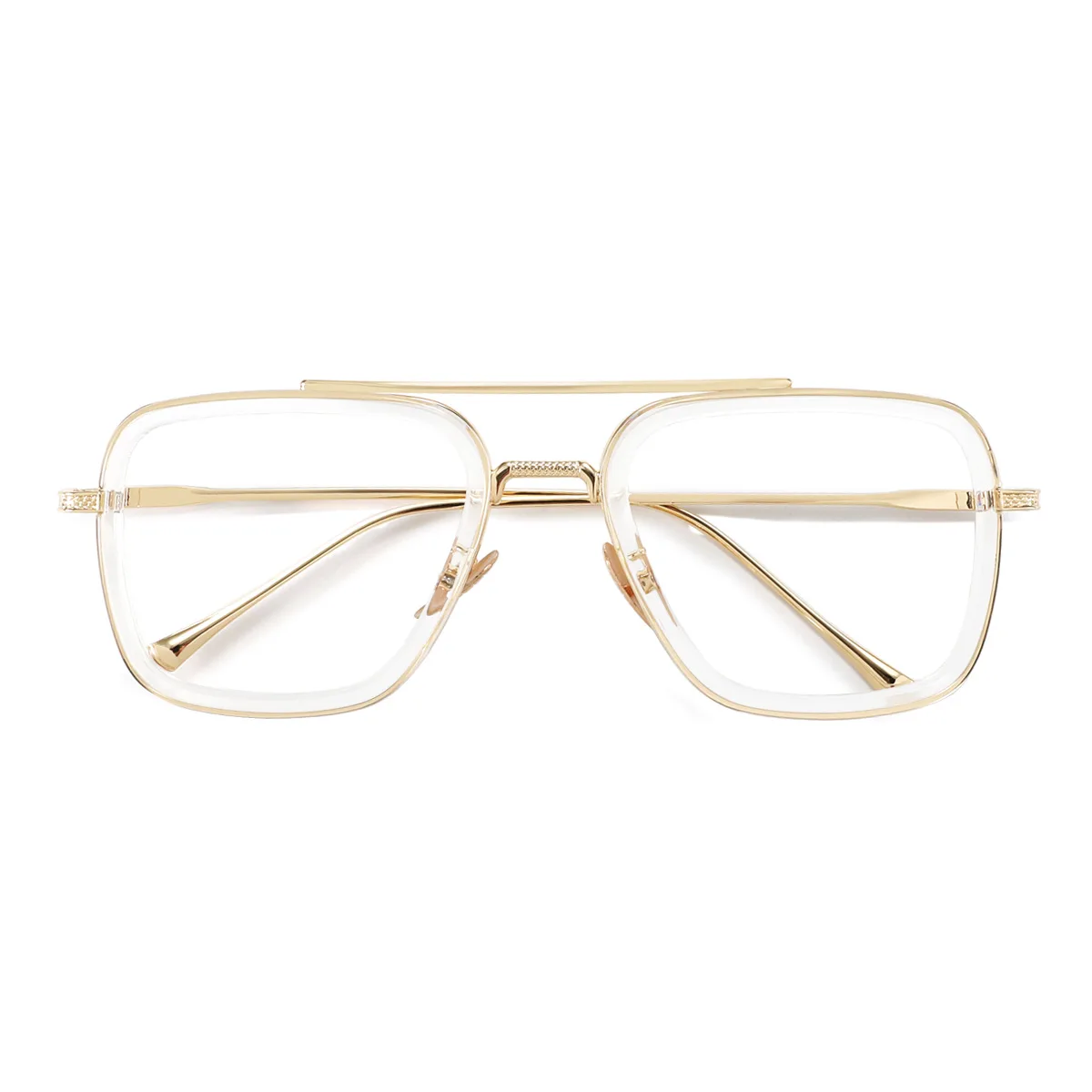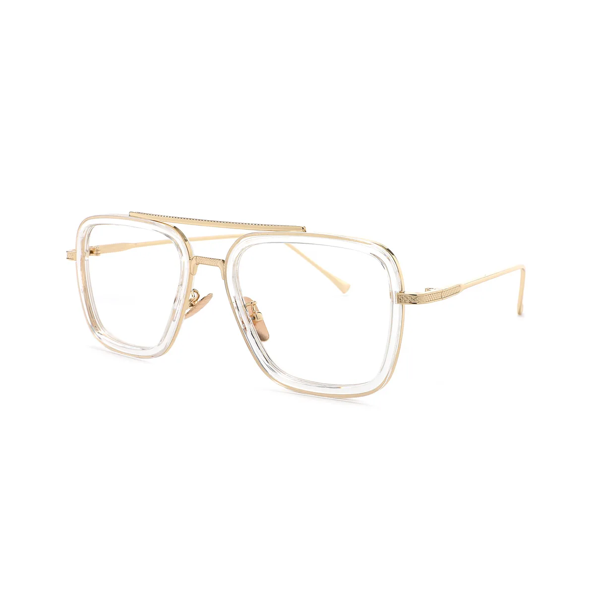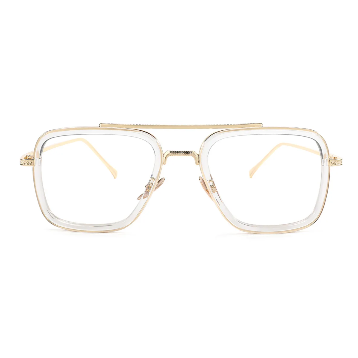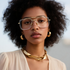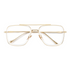 O modelo Roma resgata o charme retrô com uma releitura futurista: sua estrutura geométrica com aro duplo une a transparência do acetato ao metal dourado, criando um contraste de sofisticação e atitude. O detalhe da ponte superior reta remete à arquitetura clássica e transmite confiança à primeira vista. Um óculos feito para quem sabe que estilo é uma forma de expressão — e que presença se impõe no silêncio.